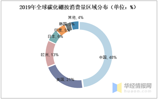 2019年全球碳化硼按消費(fèi)量區(qū)域分布(單位:%)